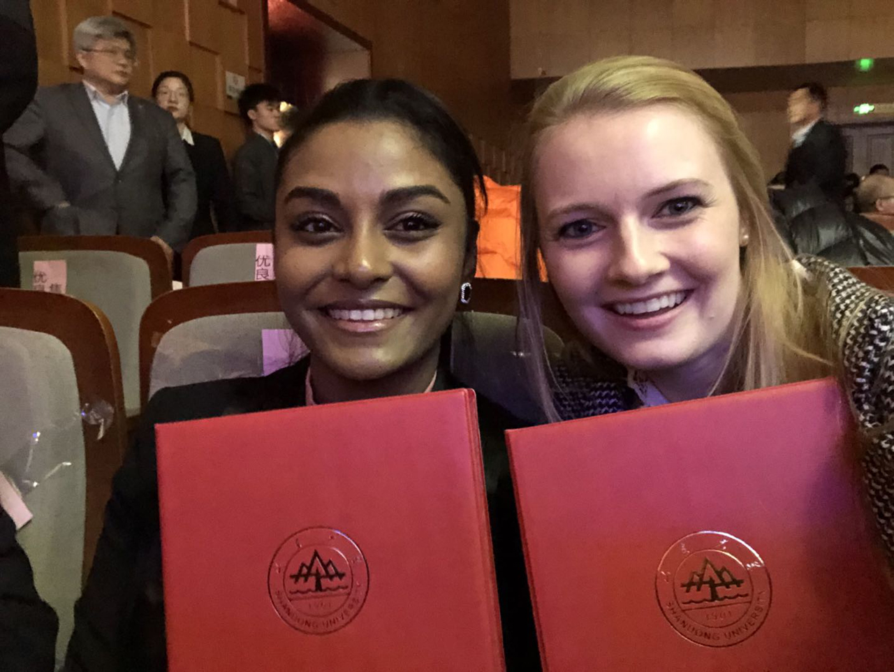 近日,金沙9001cc以诚为本首页MBBS 2017级国际学生月季(ROZANNE JORDAN)和月亮(LAYKEN MOONSAMY)同学荣获2019年度中国政府优秀来华留学生称号。金沙9001cc以诚为本首页共有9名国际学生(5名本科生、4名研究生)获评。