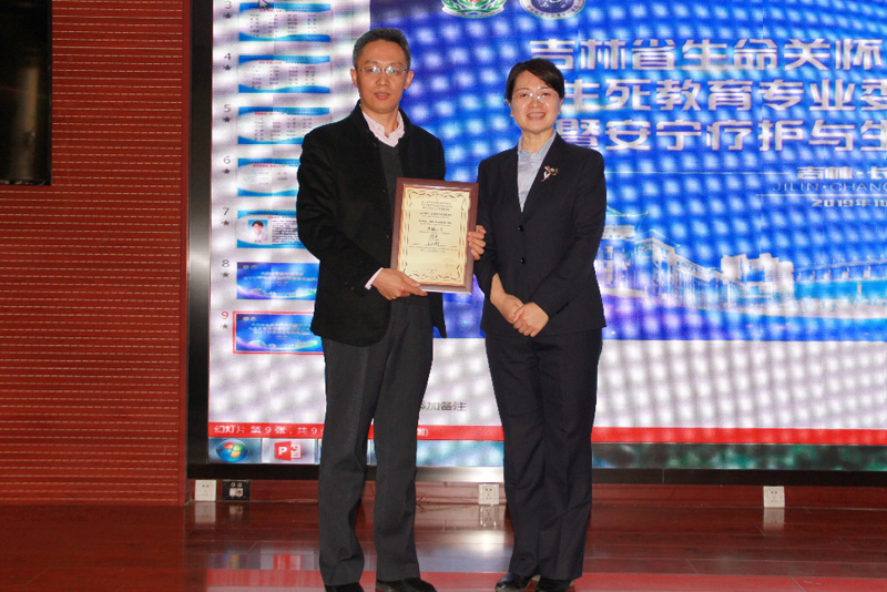 王云岭副教授授课后,吉林省生命关怀协会安宁疗护与生死教育专业委员会主任委员刘芳教授为其颁发了授课证书。