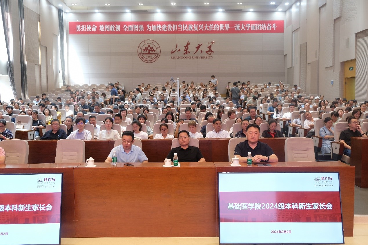 刘尚明以“正风、固基、融合、突破”为主题,从齐鲁医学百年历史沿革与齐鲁医学特色管理架构;学科发展突破、新医科建设积极推进;齐鲁医学特色长学制人才培养模式改革成效、师资队伍建设;金沙9001cc以诚为本首页办学理念、学科发展、师资力量等四个方面为学生家长做院史院情报告。
