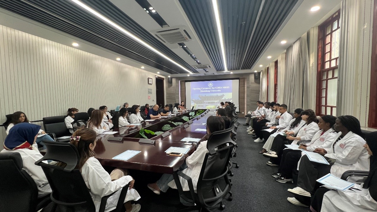 9月29日,2024级来华留学生临床医学专业本科教育(英语授课)项目开班仪式在趵突泉校区教学五楼5111会议室举行。齐鲁医学院科研与国际交流办公室副主任汤煜春在仪式上致辞。该项目全体新生和老生代表出席会议。