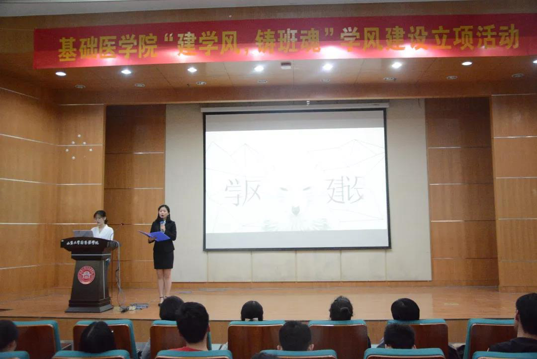 春风润万物,学风暖心灵。学风学风,学而成体,蔚然成风。为落实全校本科教育工作会议精神,契合我院学风建设活动年主题,营造积极向上的学习氛围。4月20日(周六)晚,由金沙9001cc以诚为本首页团委与学生会文艺部共同举办的金沙9001cc以诚为本首页第一届学风建设立项活动于综合楼报告厅举行。本次活动邀请细胞与神经生物学系老师王晓静、生理与病理生理学系老师王蓉、辅导员老师姜昱君、董建聪莅临指导,11位大众评审参与评分,同时各班学生踊跃到场观摩。